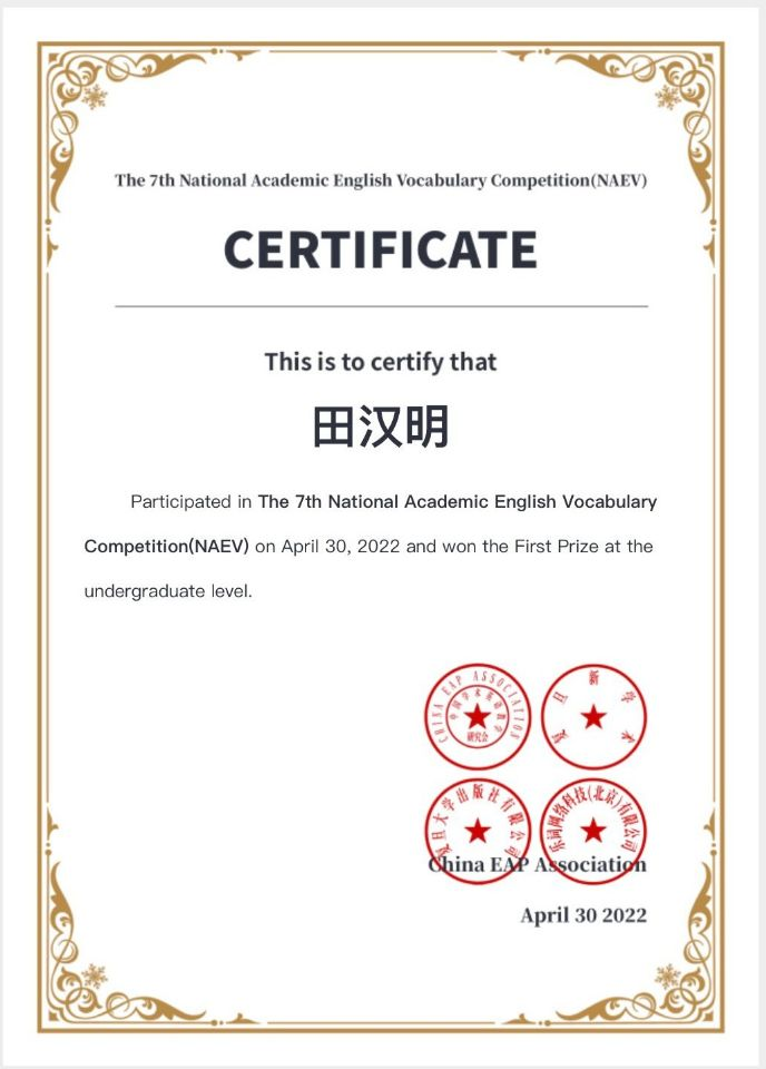 日前,由中国学术英语教学研究会和复旦大学出版社联合主办的“第七届全国大学生学术英语词汇竞赛”圆满落幕,我校学子再创佳绩,其中田汉明、苏凌钰、张超等17人荣获一等奖。啪啪啦 牵头组织了大赛在我校的相关赛事活动,曲园学术英语协会协办。