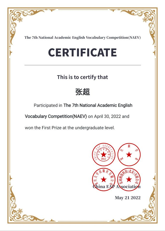 我校学子在“第七届全国大学生学术英语词汇竞赛”中再获佳绩