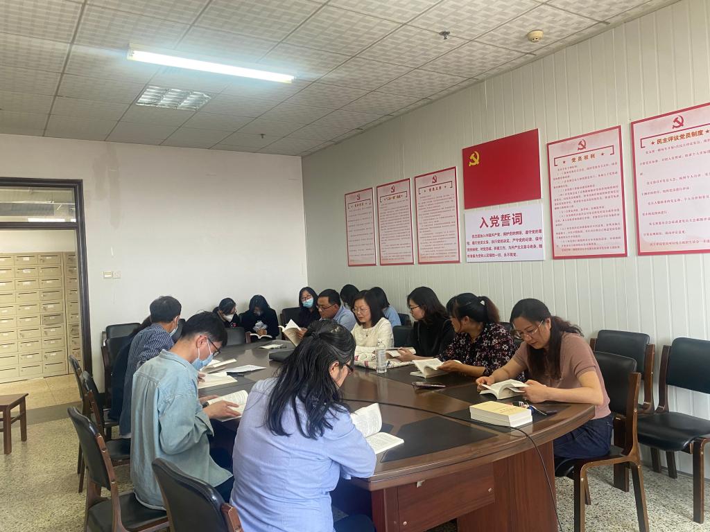 会议第一阶段,全体党员集体学习《习近平新时代中国特色社会主义思想专题摘编》。杜庆凤简要介绍了该书的主要内容,并带领党员们重点学习了第十章第(五)部分“推动中华优秀传统文化创造性转化、创新性发展”,以及第(六)部分“讲好中国故事,传播好中国声音”的有关内容。她要求党员们务必深入学习,深刻理解,并努力贯彻到自身教学实践中去,要坚持立德树人、以文化人,努力培养能够担当民族复兴大任的时代新人。部分党员代表发言表示,一定充分重视本次主题教育活动,认真完成既定的学习内容,完成线上线下的理论学习任务,特别是学习强国平台相关内容的学习。