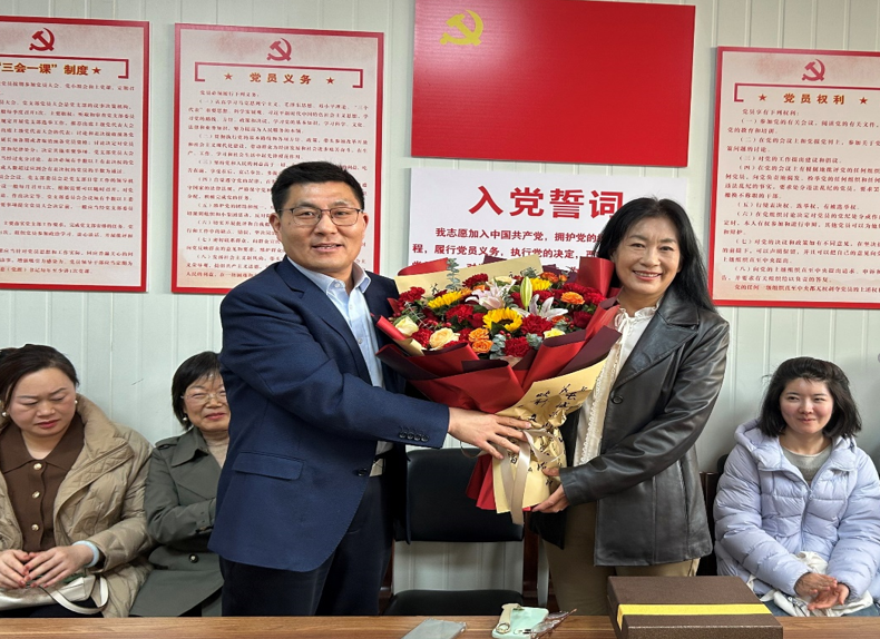 在欢声笑语中,王福祥代表啪啪啦 为王嫦娟老师送上饱含诚挚祝福的鲜花。全体工会会员准备了精美的礼品集体表达对王老师依依不舍之情和美好退休生活的深情祝愿。
