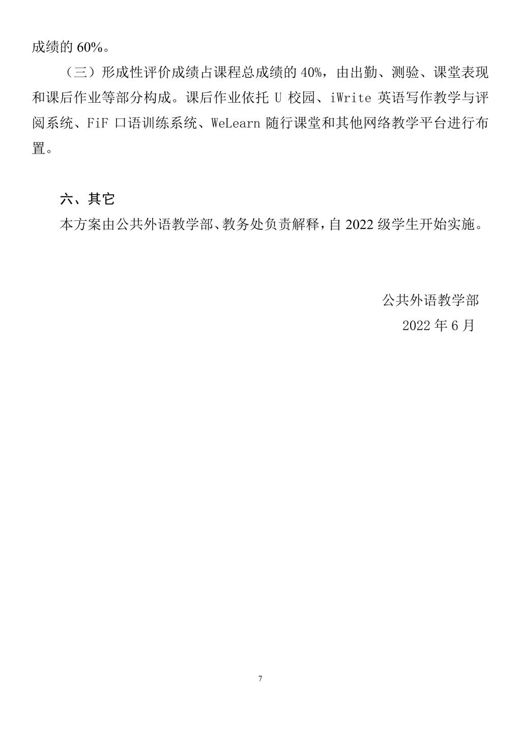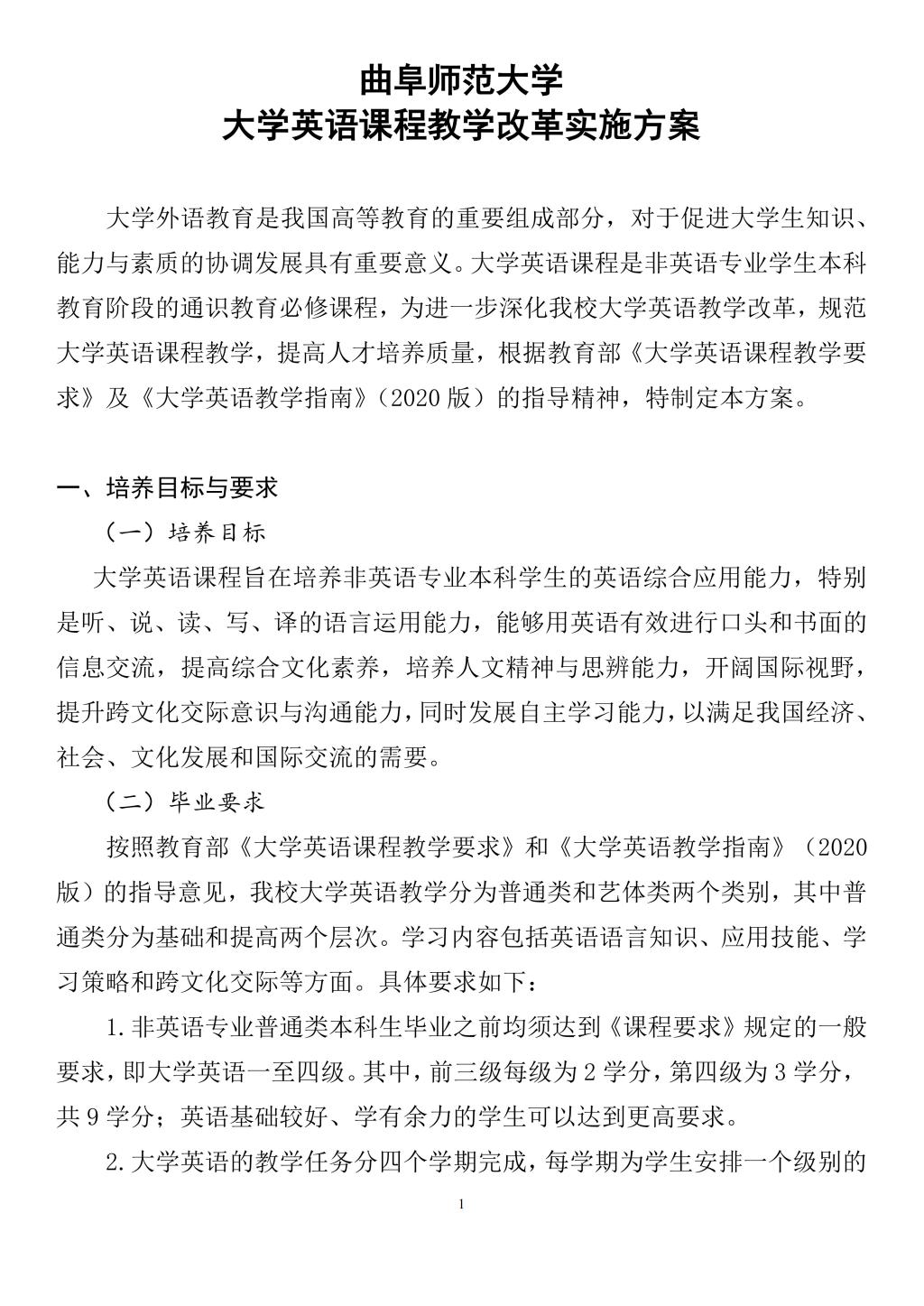 啪啪啦 《大学英语》课程教学改革实施方案(2022版)