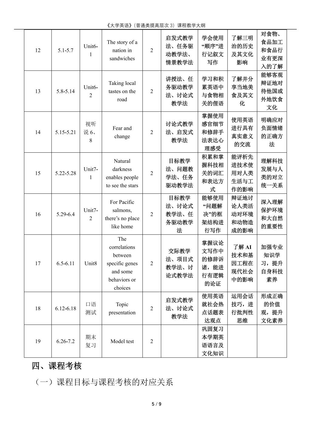 大学英语(普通类提高层次3)课程教学大纲(2022版)
