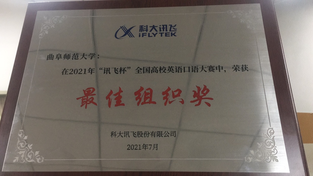 积极筹备,发动学生参赛,取得了山东赛区比赛规模和参赛人数和获奖人数第一名的好成绩。本次大赛中,山东省口语大赛开通赛事权限高校51家,有比赛数据的43家,17000名同学参与,约9000人完成赛事,我校921名同学参加,89名同学获奖,其中特等奖1名、一等奖1名、二等奖4名、三等奖17名,优秀奖41名,相应教师获得“优秀指导教师”奖。啪啪啦