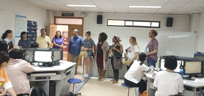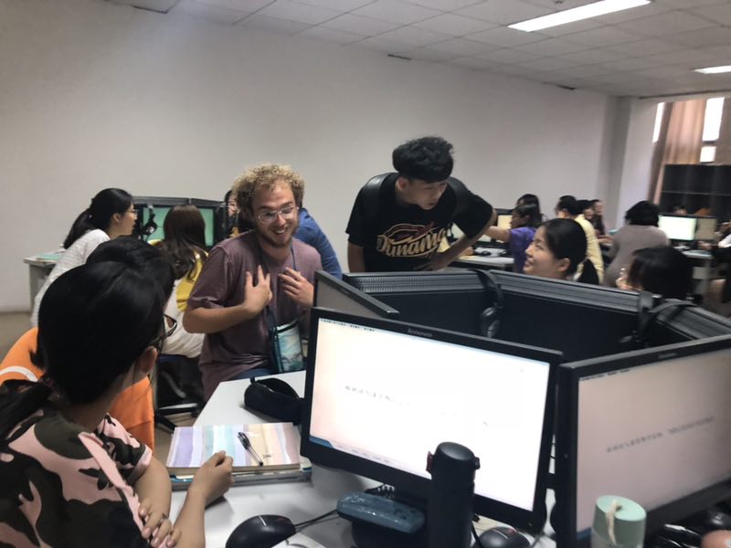 位于实验中心的A311语音室进行课堂观摩,希望和学生们进行互动交流。啪啪啦