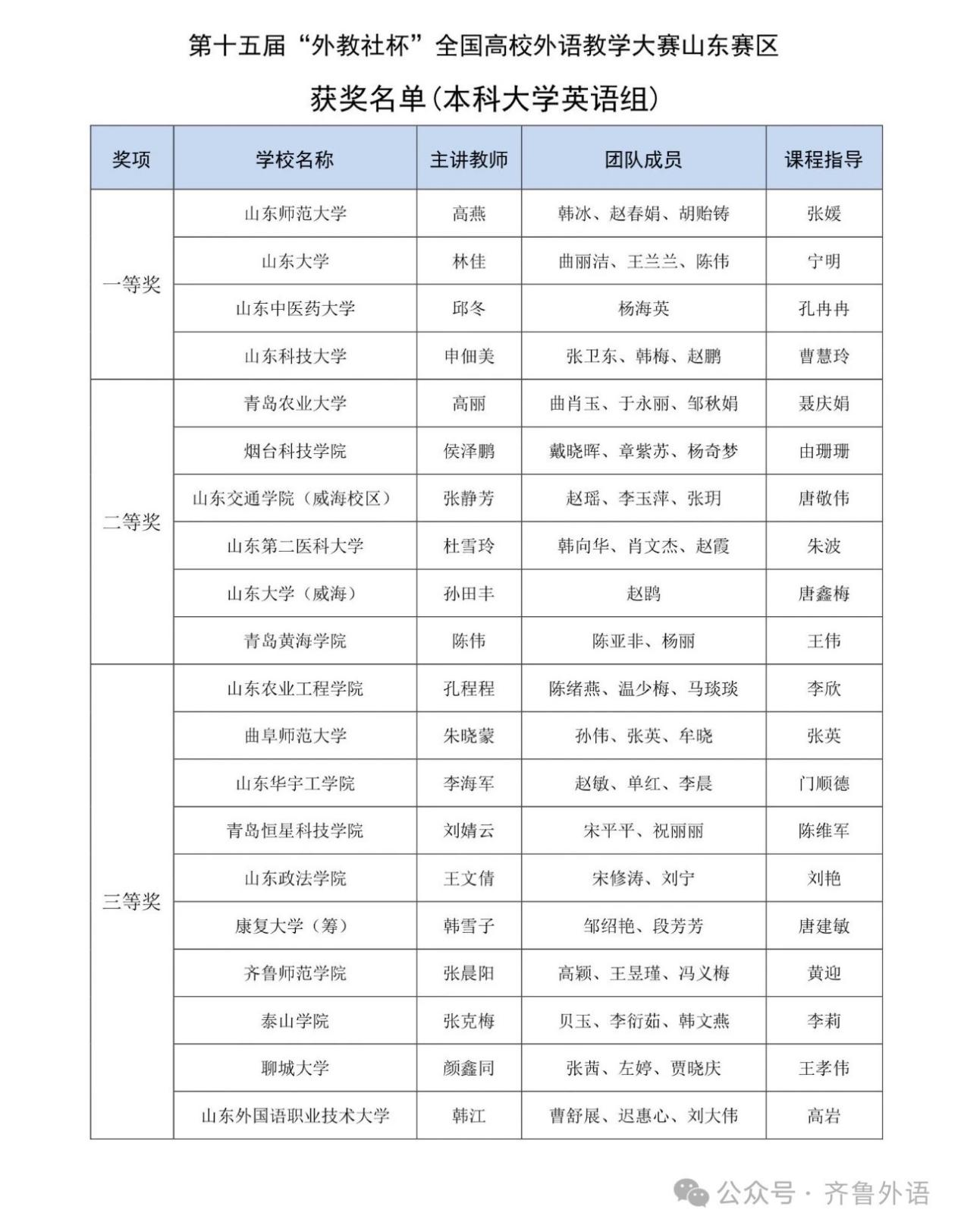 5月10日至12日,第十五届“外教社杯”全国高校外语教学大赛山东赛区复赛和决赛在山东师范大学长清湖校区成功举行。啪啪啦 选派的啪啪啦 朱晓蒙教师团队在比赛中展现了良好的业务素质,荣获本科大学英语组三等奖。