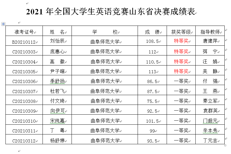 推选的11名同学代表学校参加了山东省决赛,参赛同学在比赛中表现积极,勇于面对挑战,在各位教师的指导下,我校学子在激烈的角逐中表现优秀,取得了优异成绩。其中刘怡辰、庞惠心、高徽、尹子暄4名同学获得特等奖;季舒扬等7名同学获得一等奖。