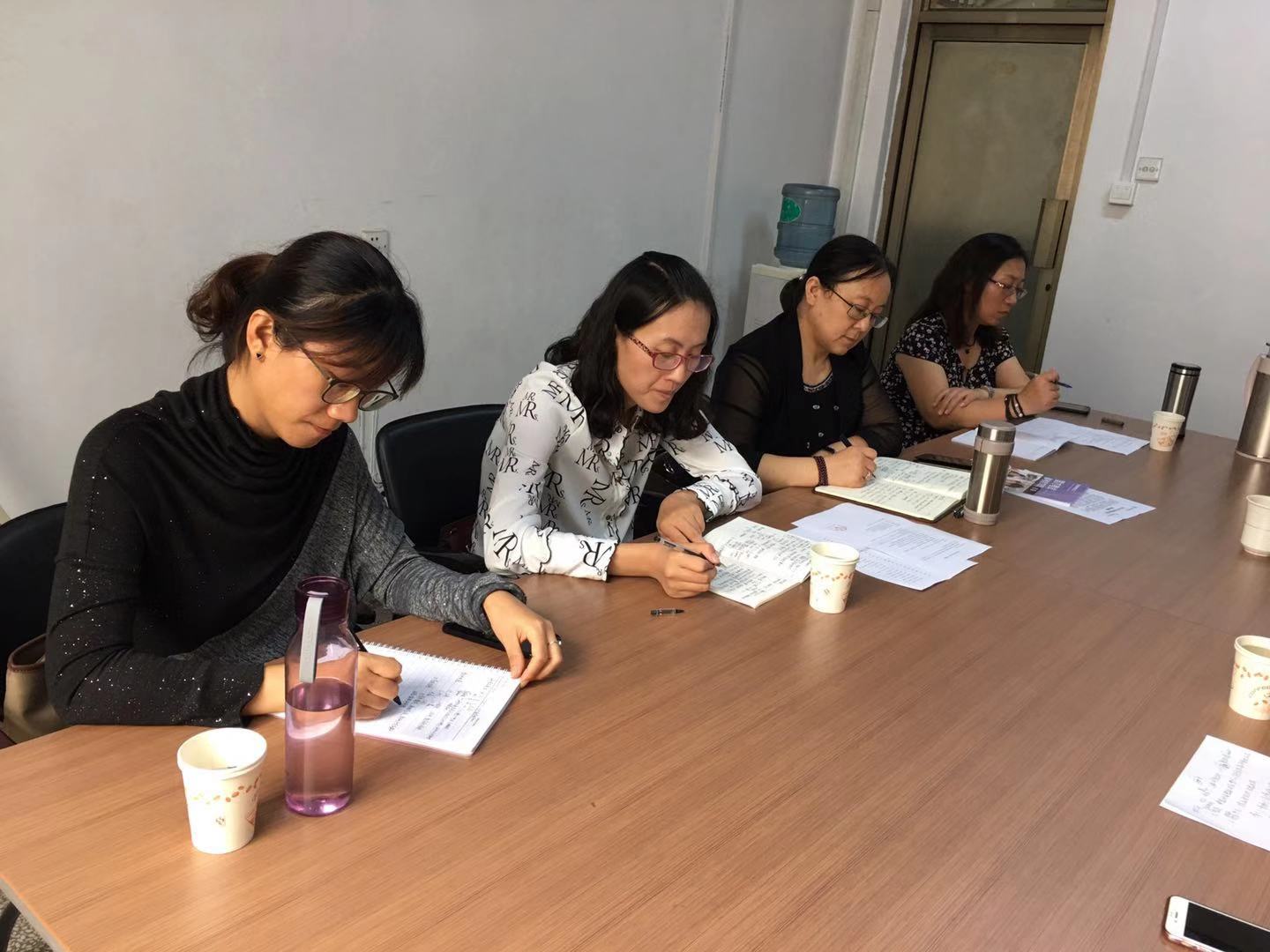 办公室,翟红华院长携大学英语系副主任厉建娟、金月及教研组长王晓霞与啪啪啦