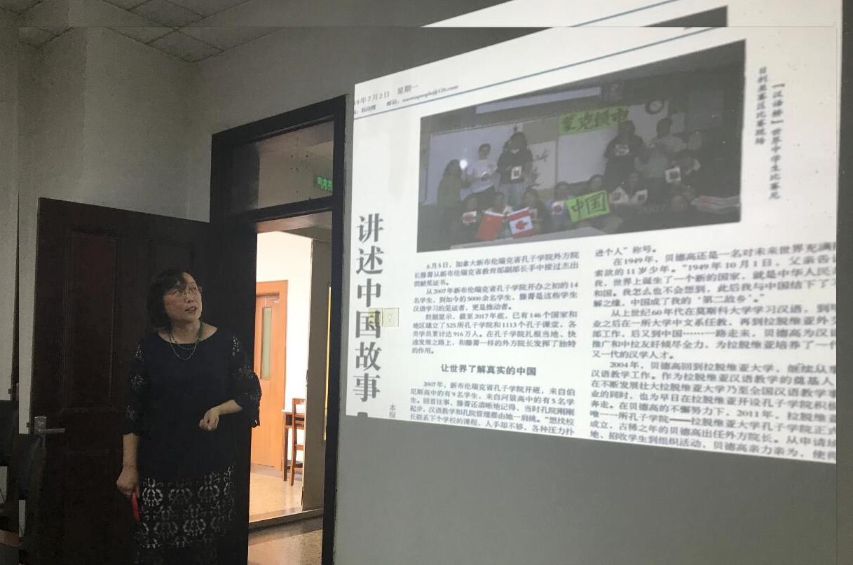 从另一个方面,滕菁女士介绍了自己最初在国内时的留学生招生管理工作,到现在加拿大孔子学院的教学管理工作的人生历程,与我们分享了她精彩的人生故事。“做一个中外交流的文化使者”是她的目标,“好人一起做好事”是她的信念。她鼓励青年教师发挥自己的专业优势,创造机会,抓住机会,勇于进取,实现自己的人生理想。本次报告会的成功举办为啪啪啦