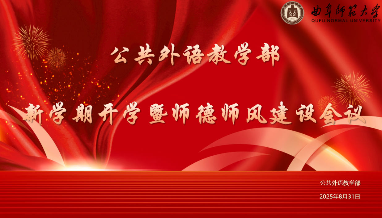 2025年上半年科研立项、学术著作、论文发表等方面取得的阶段性成绩,并就下半年山东省社科规划专项课题申报工作日程作了具体布置,他要求各科研创新团队发挥有组织科研优势,切实加强协协同创新和集体攻关意识,力争在高层次课题申报、高水平学术论文发表和高质量学术著作出版等方面取得新的突破;同时他还对新学期计划开展的博雅学术讲坛和学术沙龙活动的组织情况作了重点说明。王显明就新一轮大学英语课程教学改革实施方案的学分调整、形成性教学评价细则的修订与完善作了具体说明。他要求老师们充分发挥各教学智慧平台资源优势,高度重视线上教学资源的有效利用和各平台的规范管理,提升课堂管理效率与教学质量。此外,他还就“外教社杯”全国高校学生跨文化能力大赛、“外研社·国才杯”“理解当代中国”全国大学生外语能力大赛等重大赛事组织情况作了通报说明。