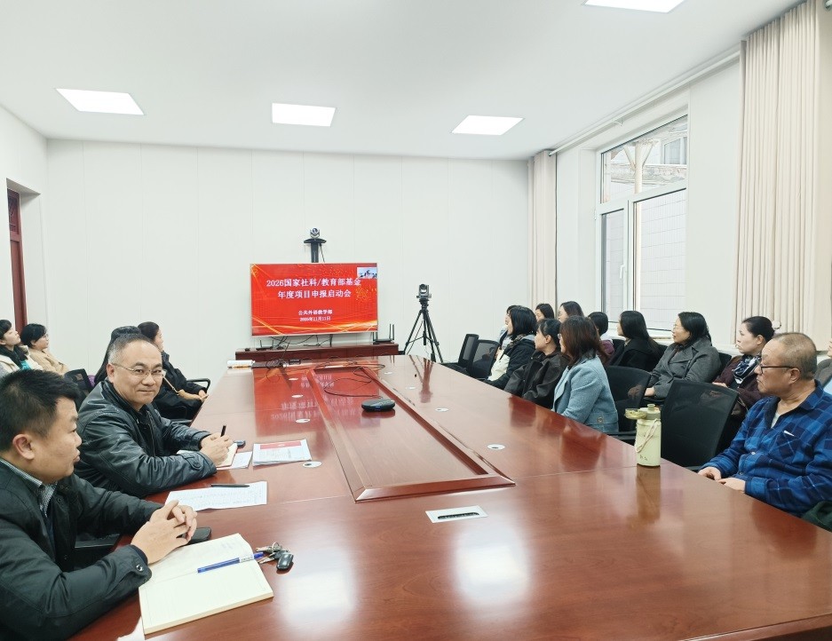 在两校区会议室召开了2026年度国家社科基金与教育部人文社科基金项目申报动员会。会议由主任王福祥教授在日照校区主持,全体教师参会,旨在详细部署2026年度高级别科研项目申报工作,进一步激发教师科研创新活力。