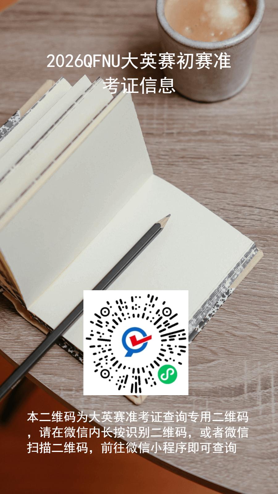 请考生们即日起用微信扫描如下二维码进入查询界面,输入姓名和学号查询准考证信息,自行打印准考证。
